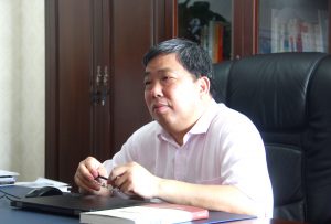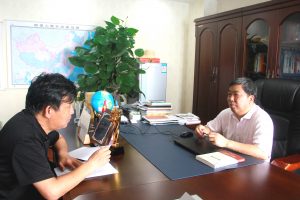 李順山董事長(右一)接受本報記者采訪